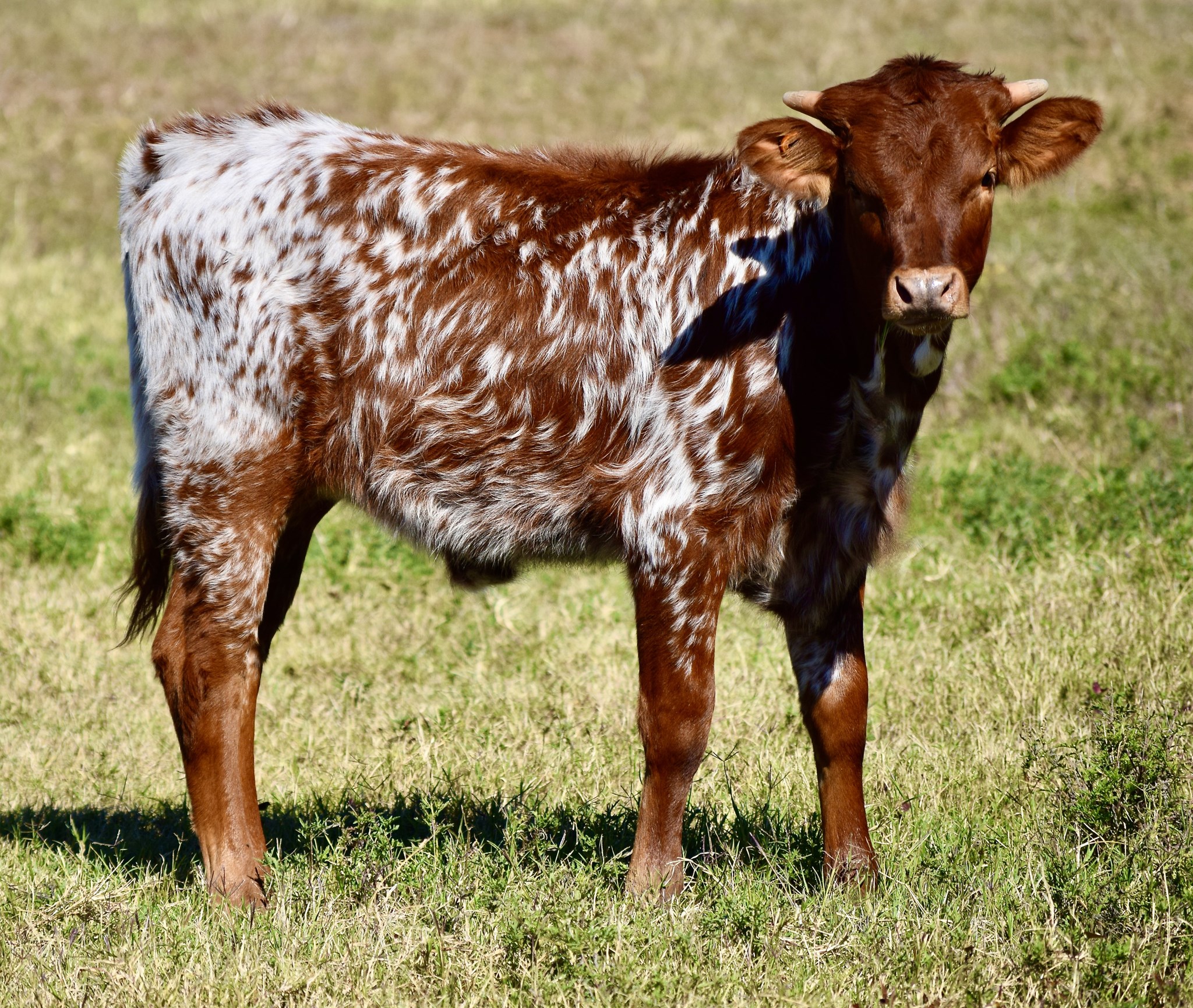 This little girl was the result of a miracle breeding. Her dam, TLS Bwana's Petunia, was near death just a short time prior to breeding. We didn't think she was going to live, much less breed back after losing a calf, mastitis turning in to sepsis, losing one teat, tail switch and about half of all 4 hooves. Petunia is completely healed now and raising this little miracle like nothing ever ailed her.